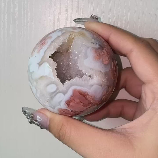 High quality sugar druzy Pink blossom agate sphere 0.38kg