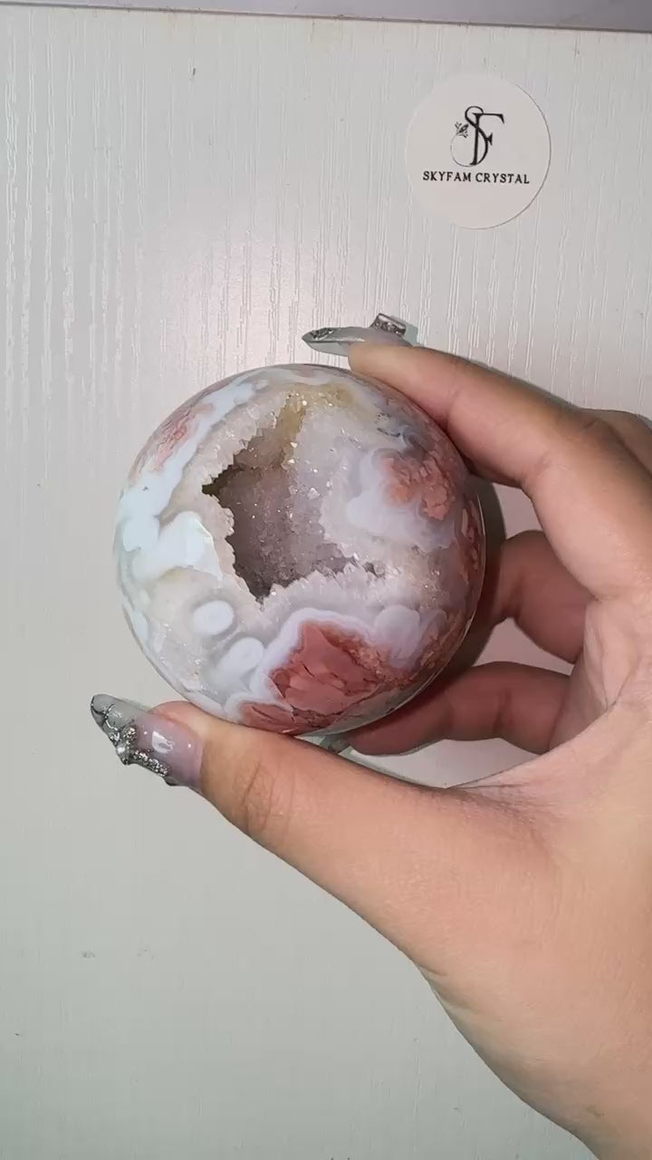 【Skye picks】Newfound crystal! High quality sugar druzy Pink blossom agate sphere 0.38kg